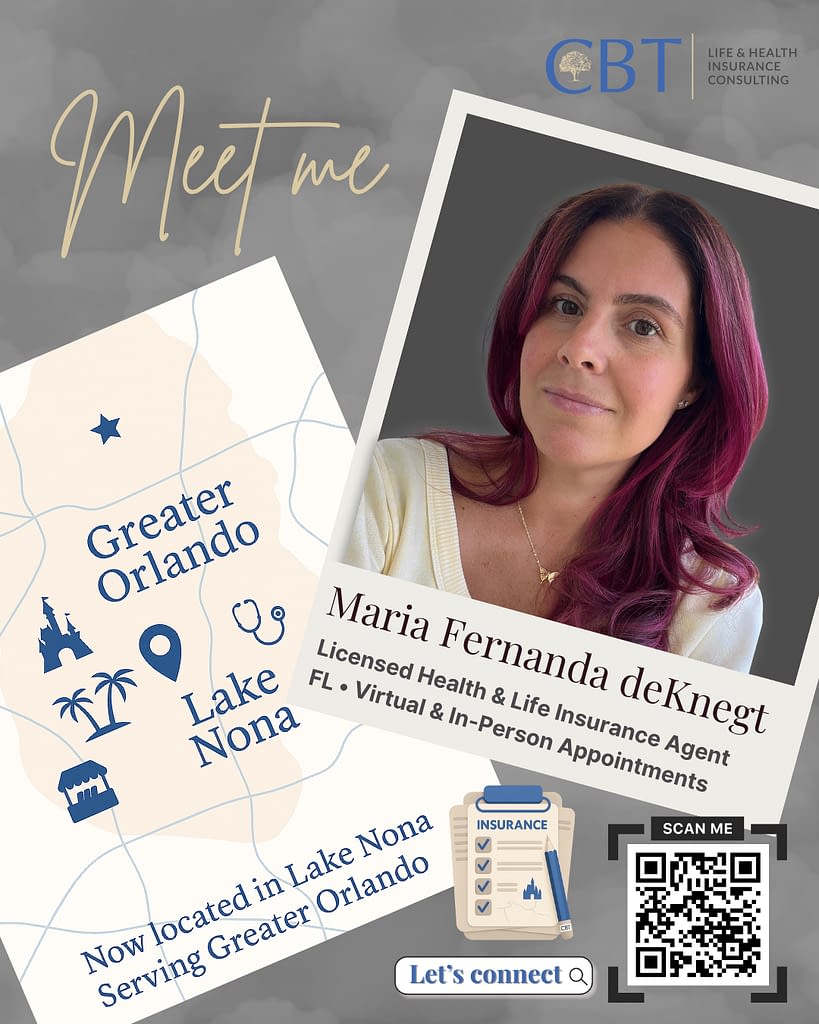 Hi, I’m Maria Fernanda deKnegt (or simply Fer) — a licensed health & life insurance agent proudly serving the Lake Nona and Greater Orlando community.